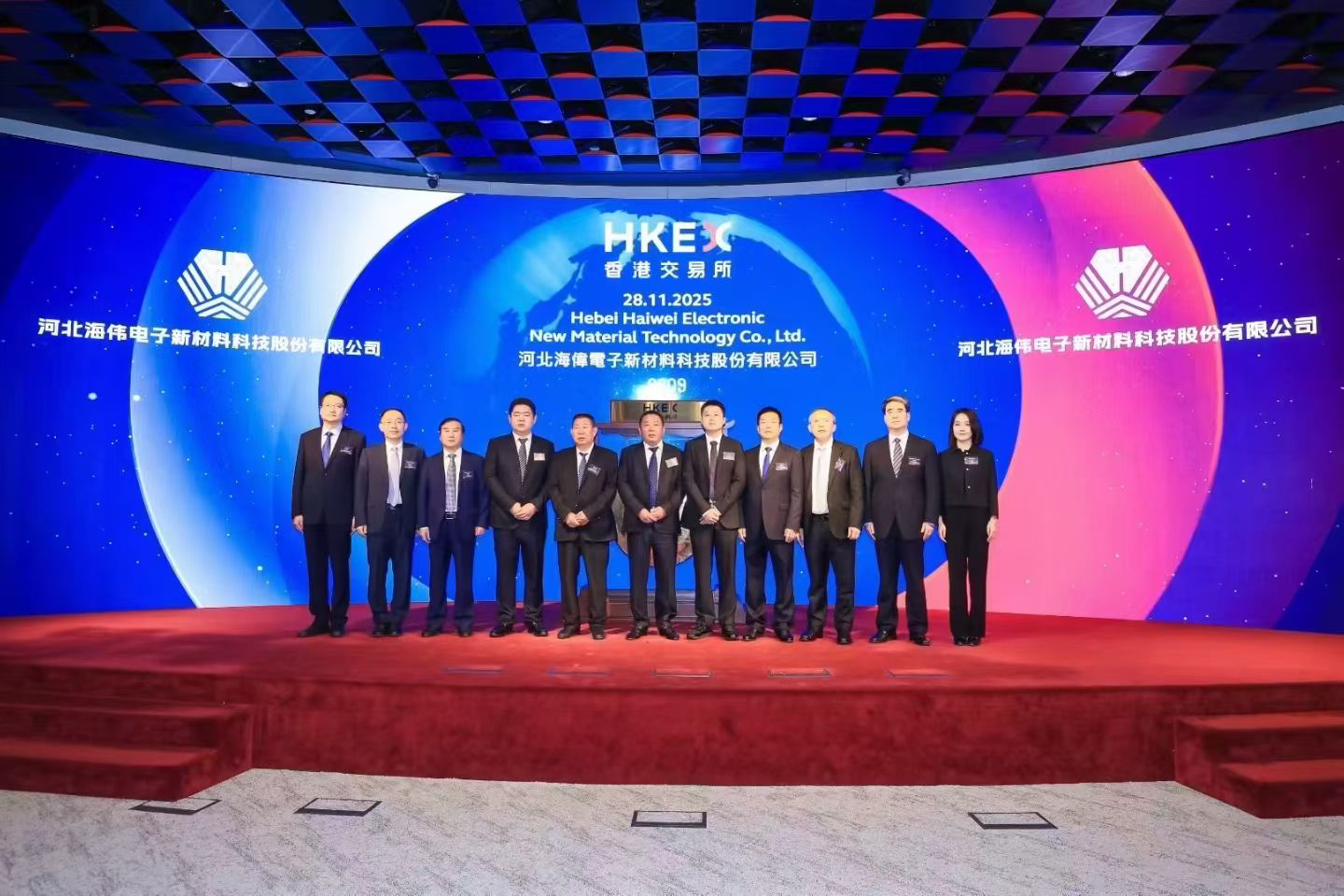 11月28日,河北海伟电子新材料科技股份有限公司在香港交易所成功上市。这是景县首家在港交所主板上市的企业,也是“十四五”期间衡水市唯一的港股上市企业,标志着景县企业在对接国际资本市场方面取得了历史性突破。